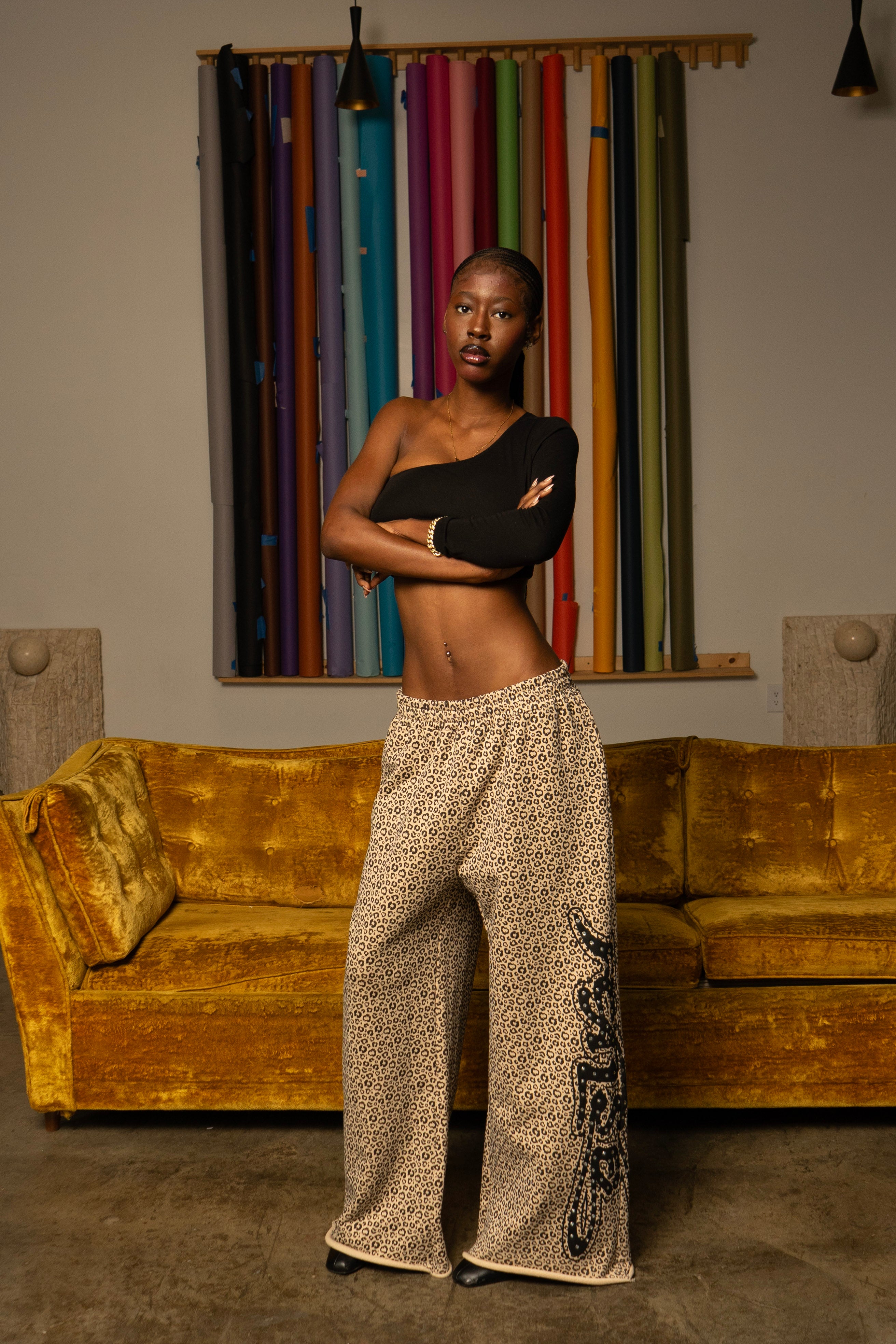 False Rhinestone Cheetah print sweats